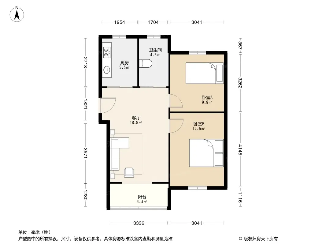 户型齐全,主打户型方正,明卫,明厨,客厅朝南,双阳台二居