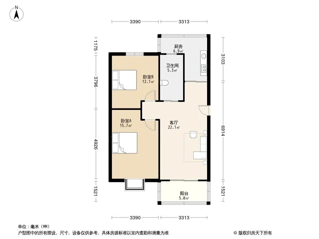 户型齐全,主打户型方正,明卫,明厨,客厅朝南,双阳台二居