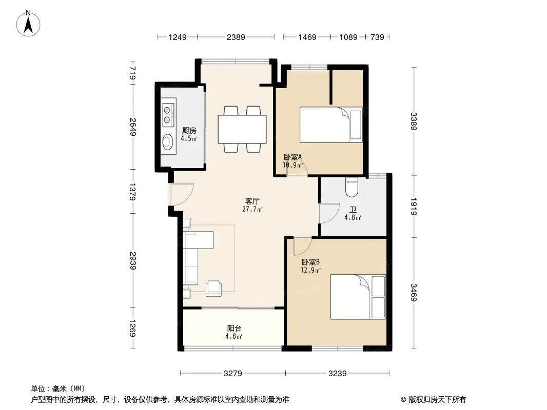 户型齐全,主打户型方正,明卫,明厨,主卧朝南二居