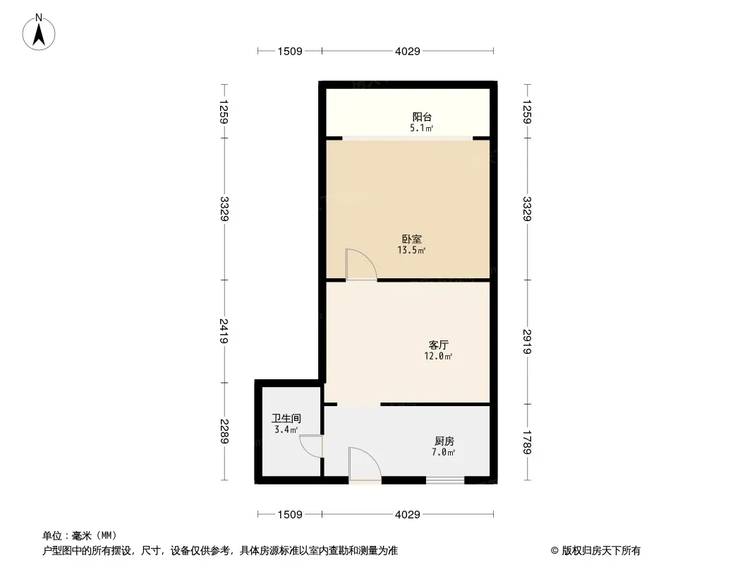 户型齐全,主打明厨,明卫,客厅朝南,全明格局一居