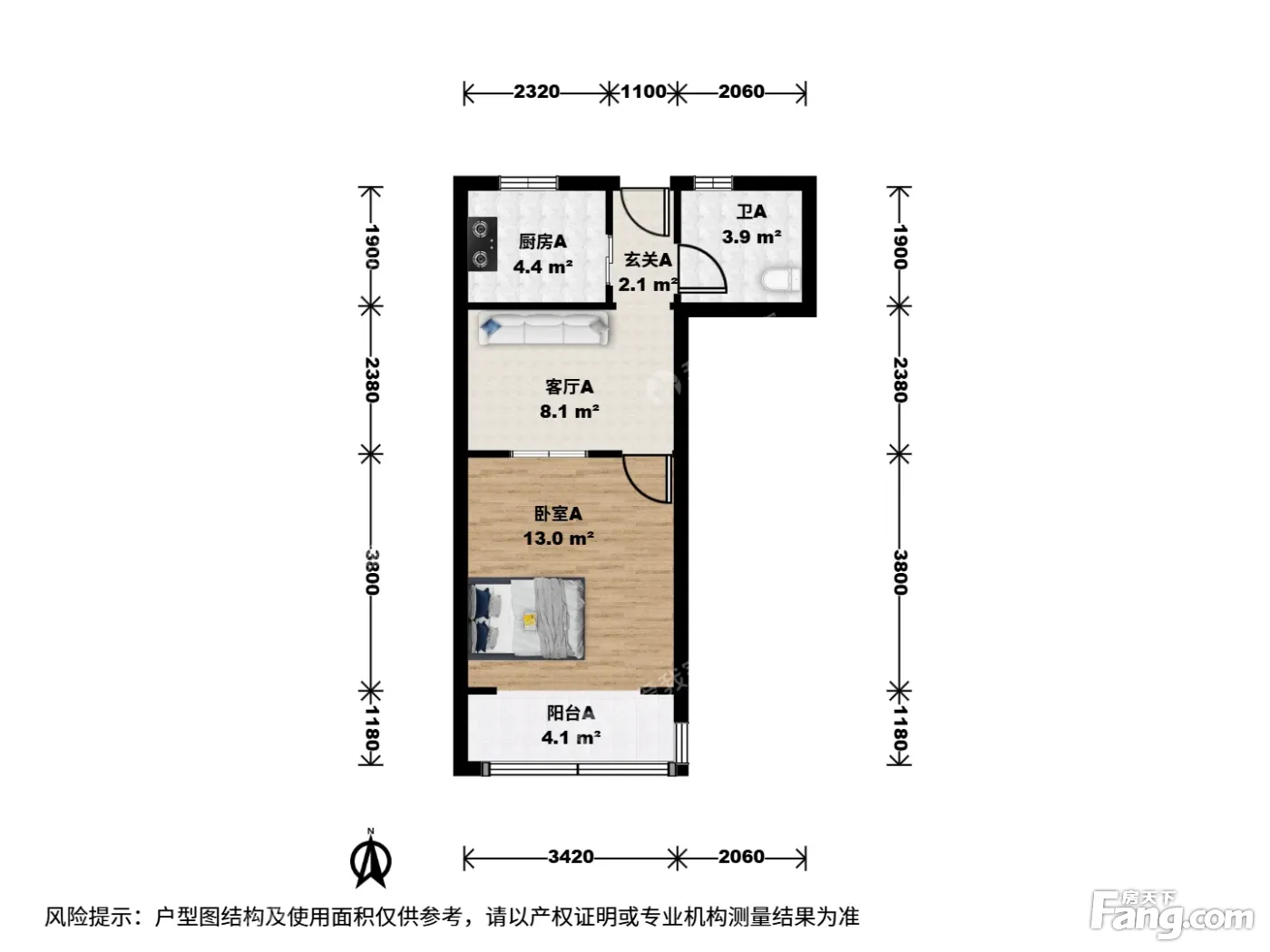 户型介绍:此房户型为1室1厅1卫,建筑面积为44.48平米,朝向为南。