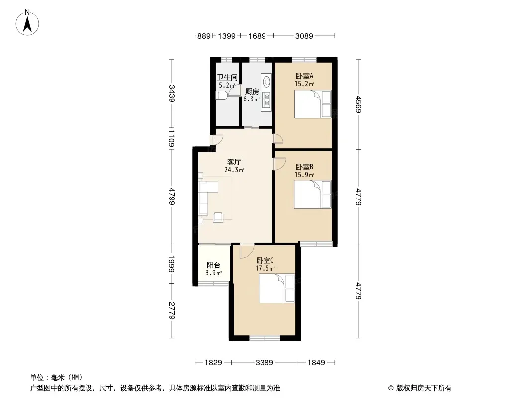 户型齐全,主打户型方正,明厨,明卫,客厅朝南三居