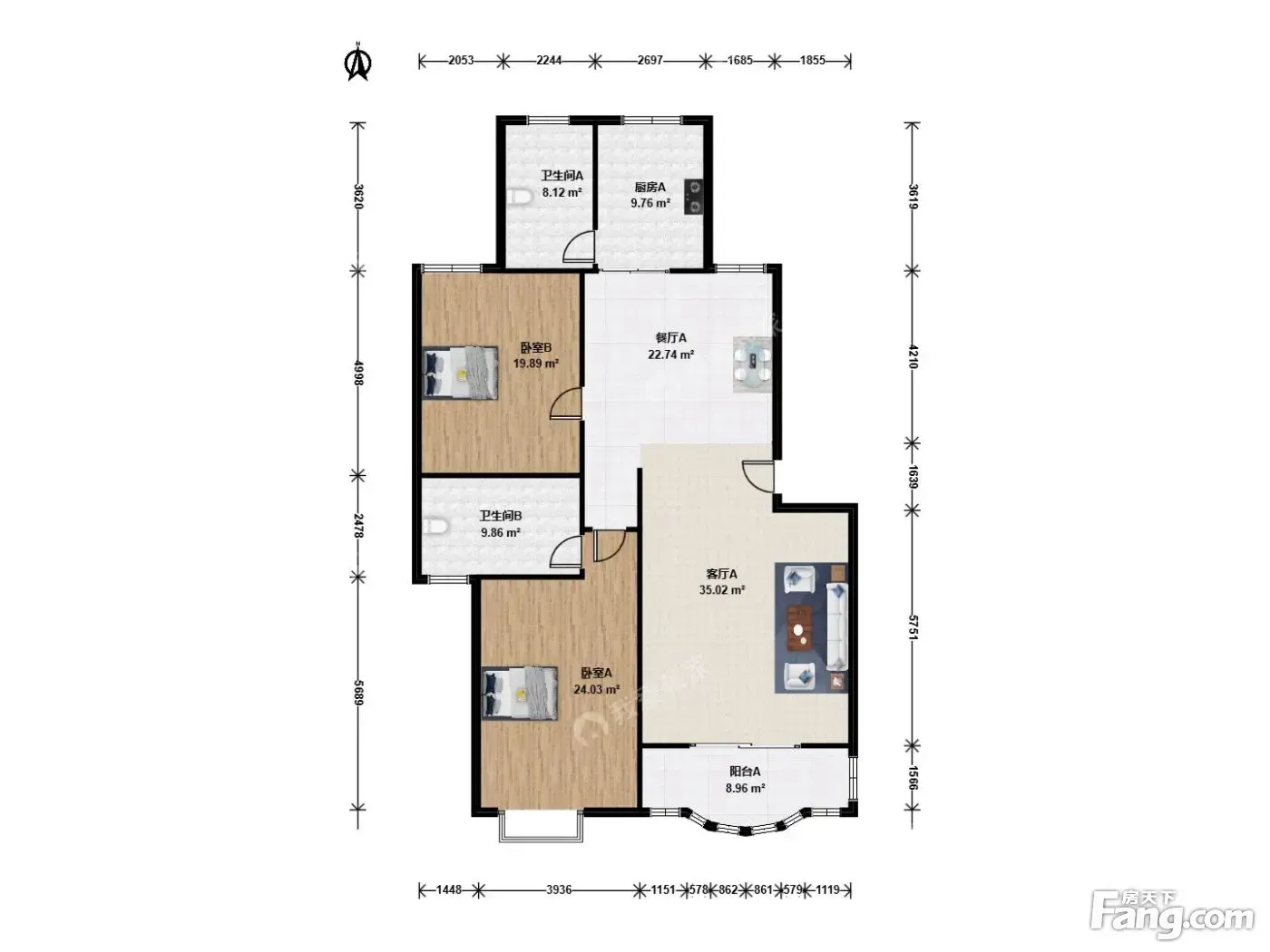 户型介绍:此房户型为2室2厅2卫,建筑面积为113.49平米,朝向为南北。