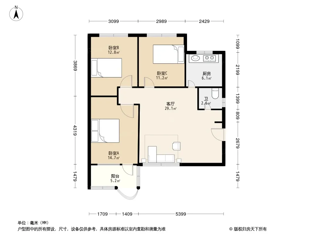 户型齐全,主打户型方正,明厨,明卫,客厅朝南三居