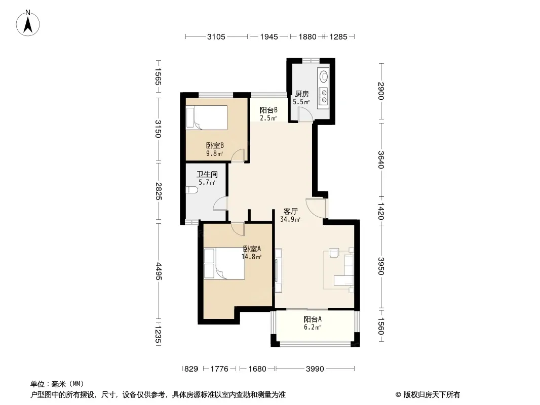 户型齐全,主打户型方正,明厨,双卧朝南,主卧朝南二居