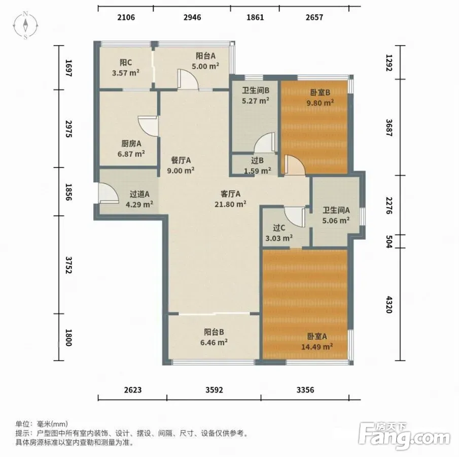 户型齐全,主打户型方正,明卫,双阳台,双卧朝南三居