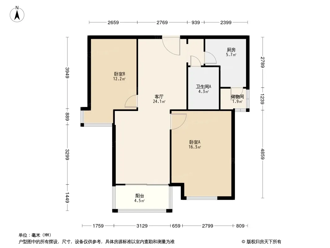 户型齐全,主打采光充足,双阳台二居