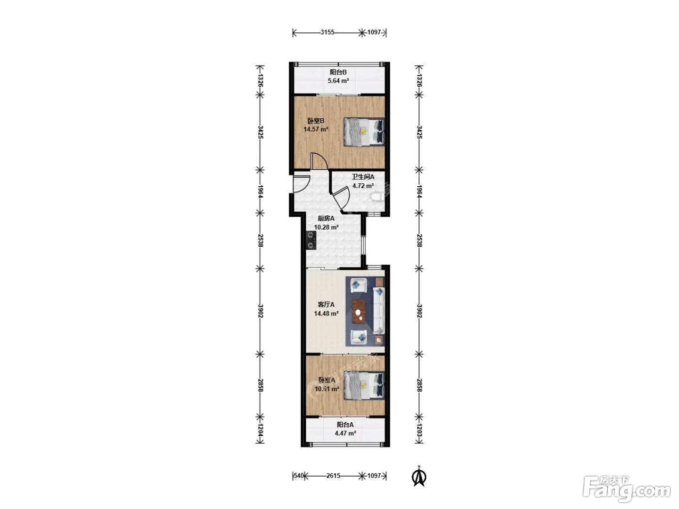 户型齐全,主打户型方正,明厨,明卫,客厅朝南,双阳台二居