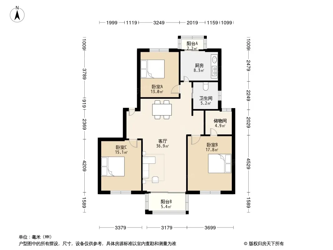 户型齐全,主打户型方正,明厨,明卫,客厅朝南,双阳台三居