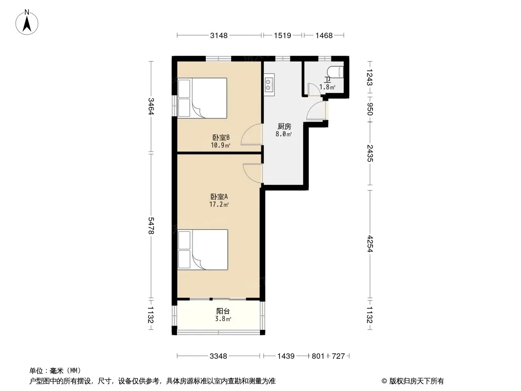 户型齐全,主打户型方正,明卫,主卧朝南二居