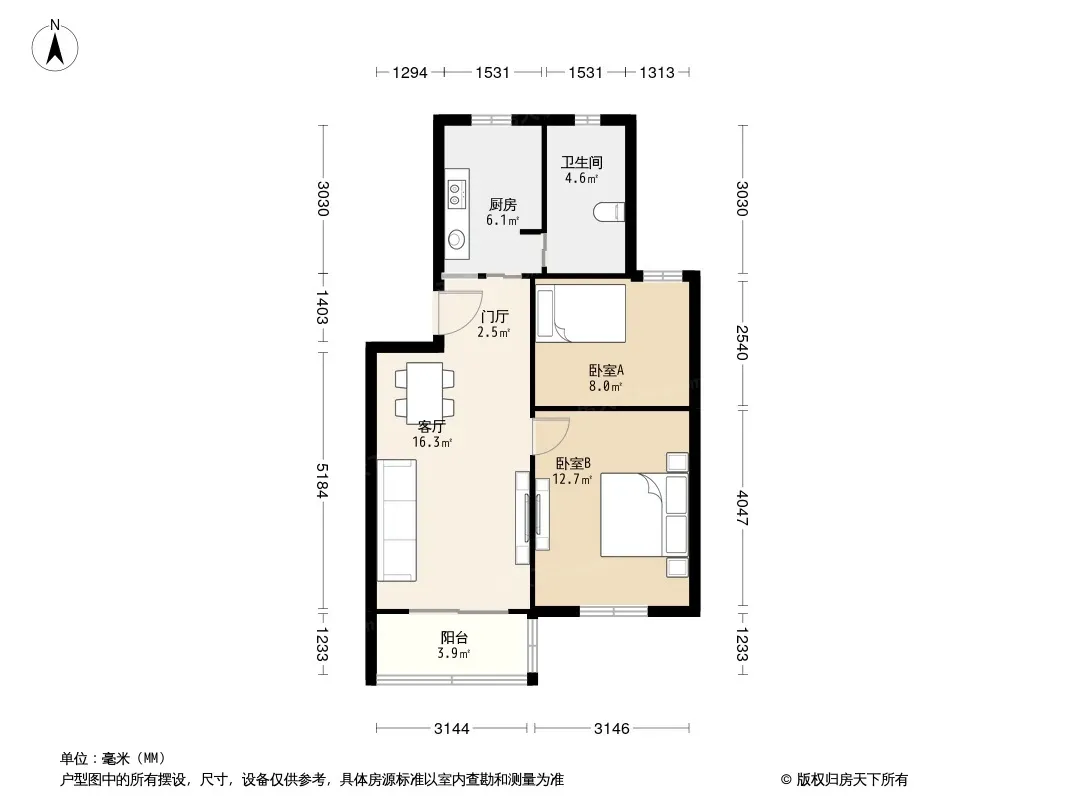 户型齐全,主打户型方正,明厨,明卫,客厅朝南,全明格局,主卧朝南二居