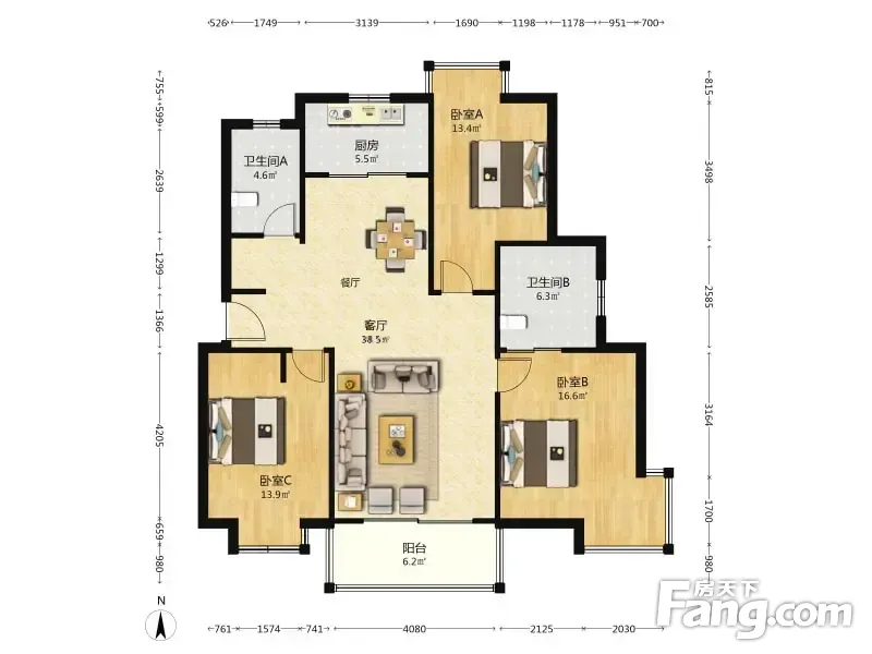 户型齐全,主打户型方正,明卫三居