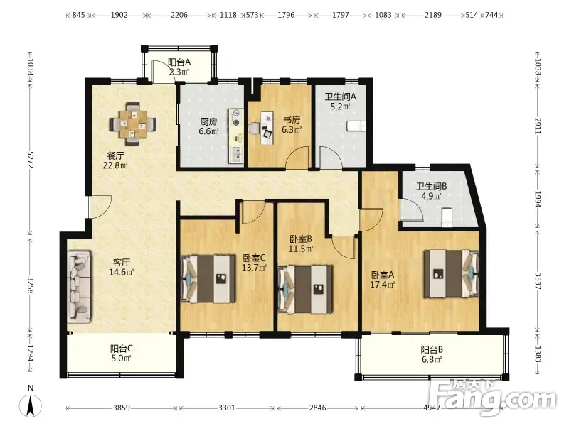 房屋拥有相对宽松的尺寸,布局通透,动静分离,设计豪华