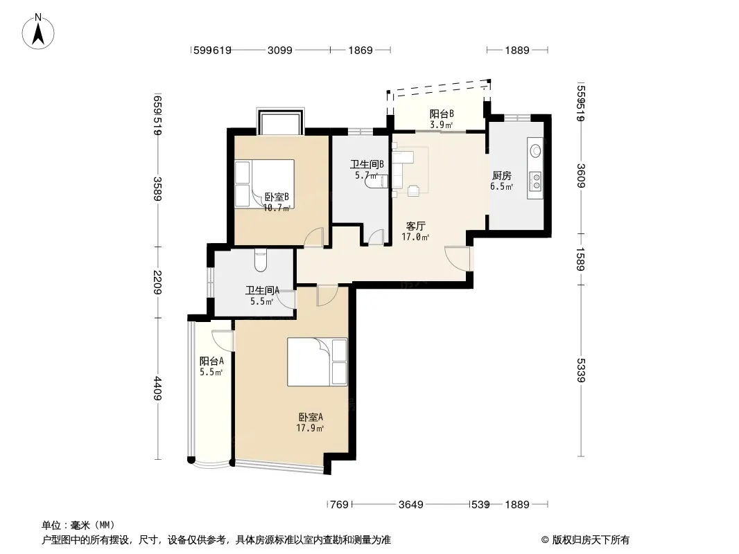 户型齐全,主打户型方正,明卫,明厨,客厅朝南二居