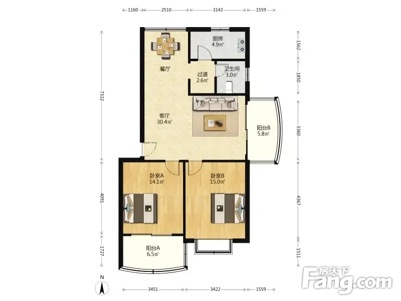 户型齐全,主打户型方正,明厨,明卫,主卧朝南二居
