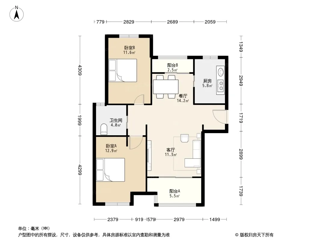 户型齐全,主打户型方正,明卫,明厨,双阳台,主卧朝南二居