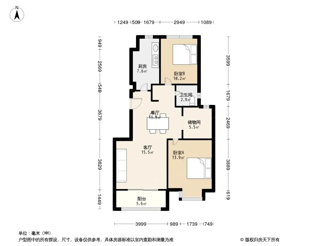 户型齐全,主打户型方正,明卫,明厨,主卧朝南三居