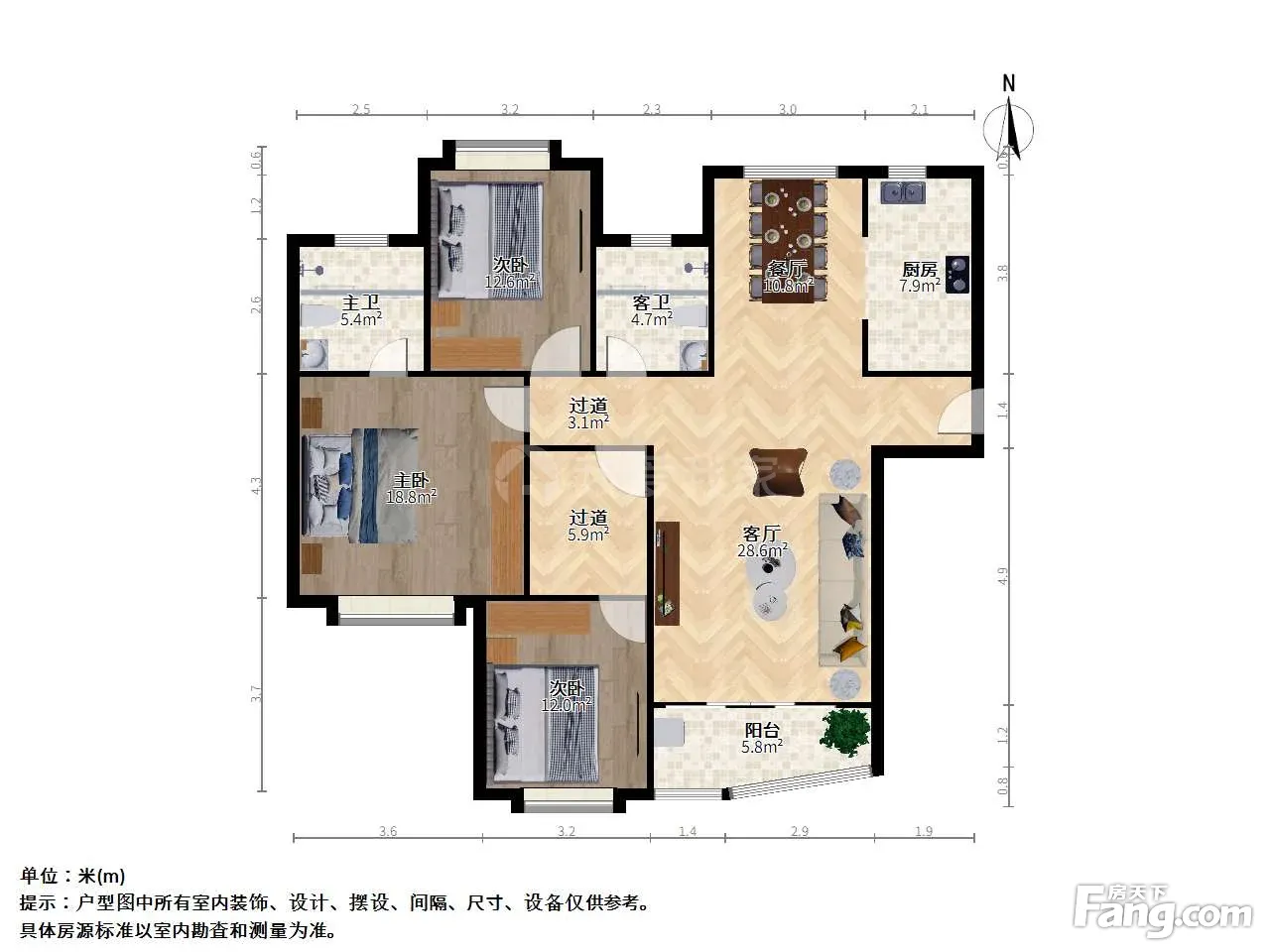 户型介绍:此房户型为3室2厅2卫,建筑面积为135.86平米,朝向为南北。