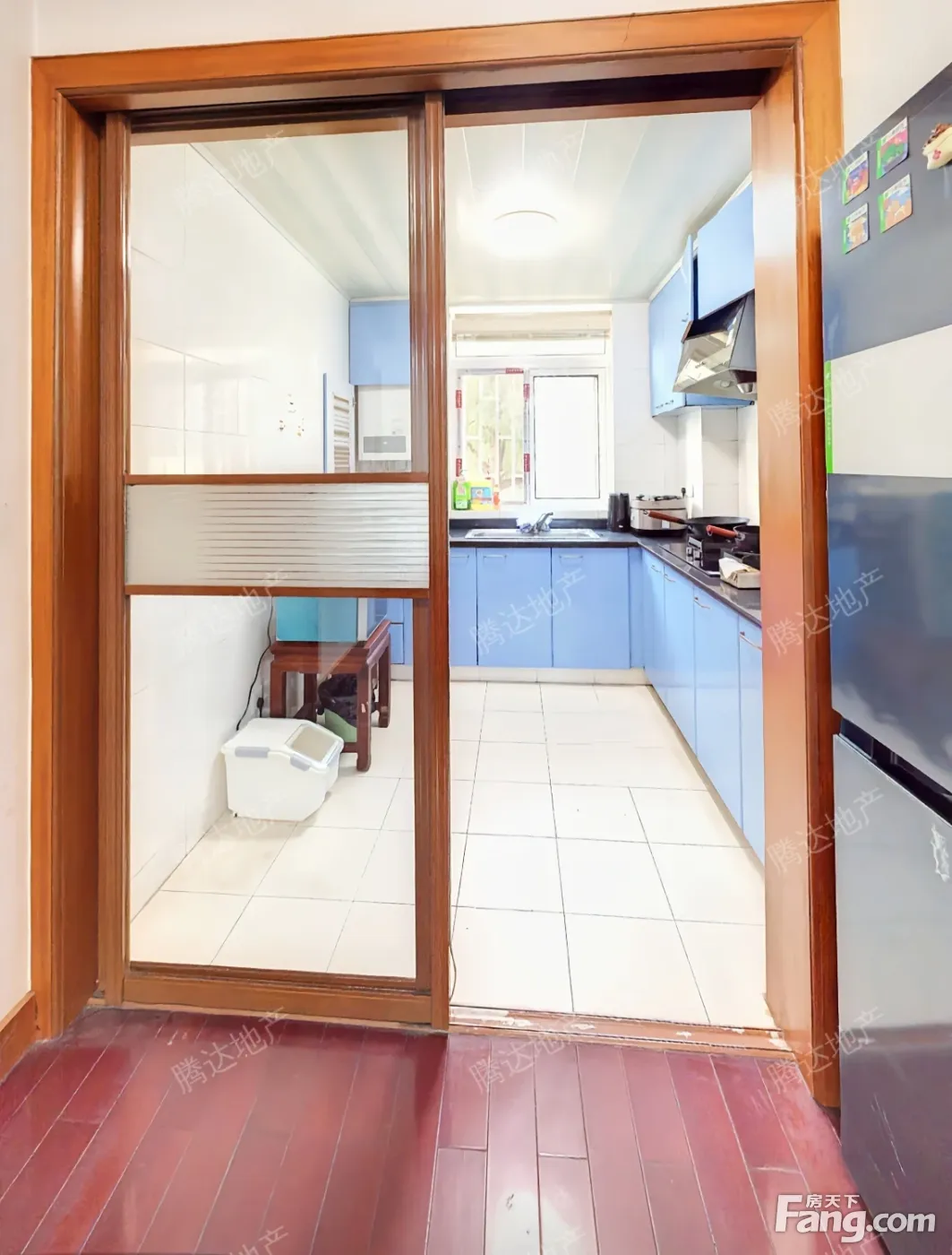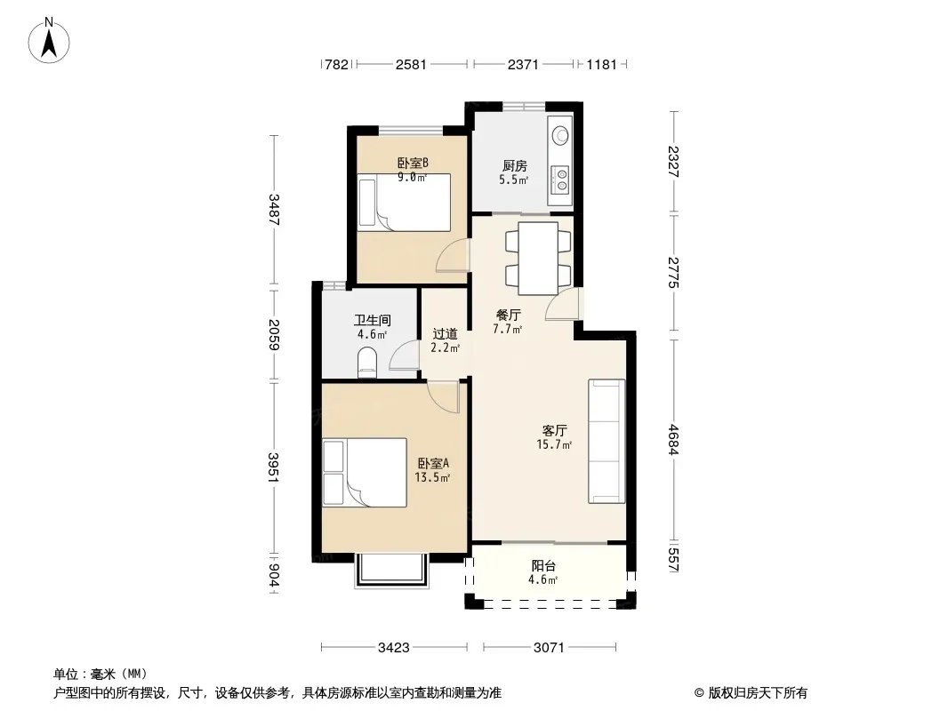 南北通透户型,主卧朝南、次卧朝北,厅南北通透,厨房和卫生间朝北,全明户型。