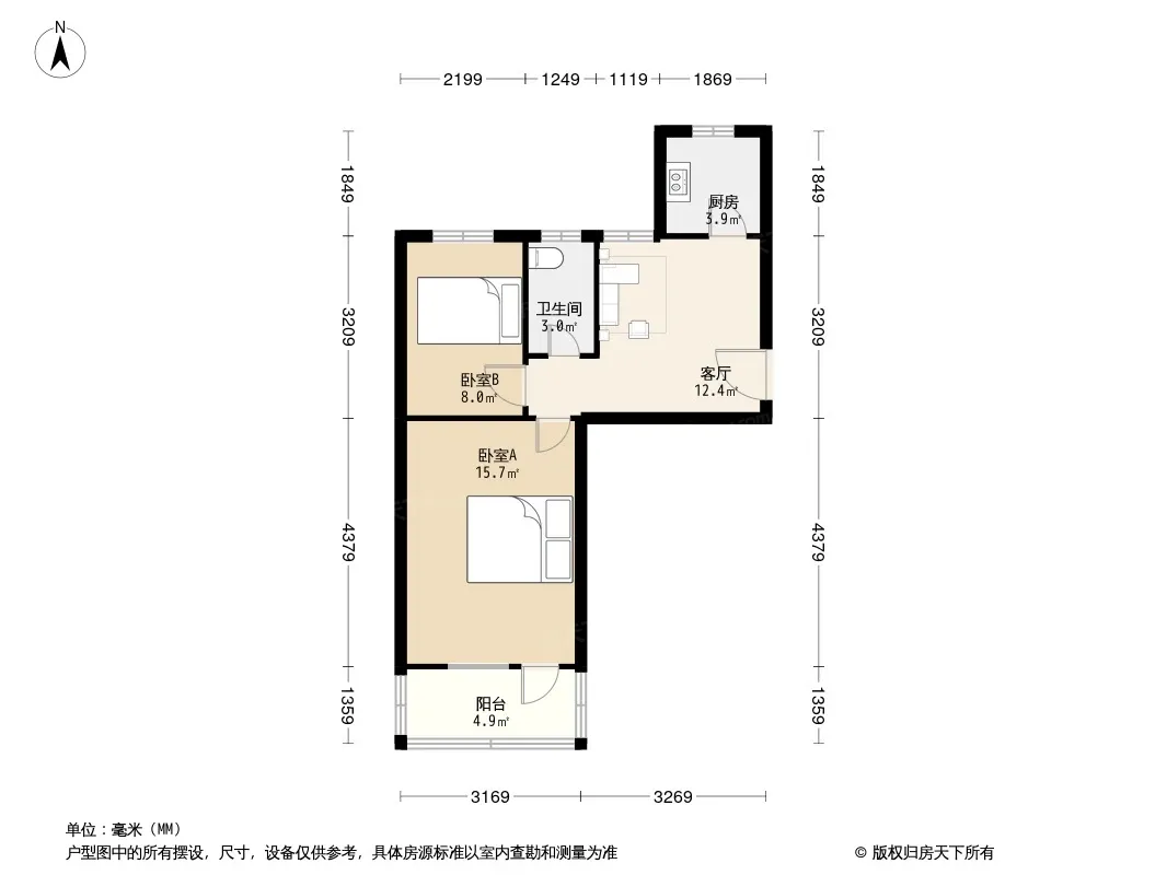 户型齐全,主打明厨,明卫,客厅朝南,全明格局二居