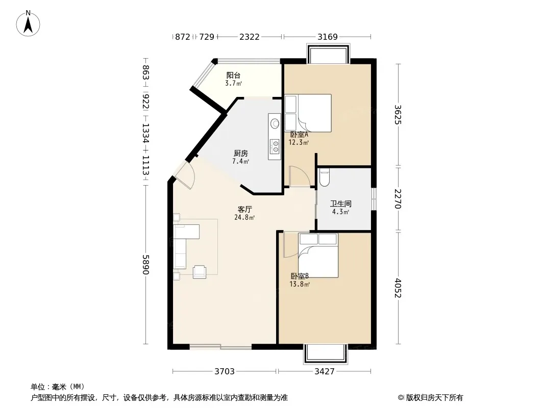 户型齐全,主打户型方正,明厨,明卫,双卧朝南,主卧朝南二居