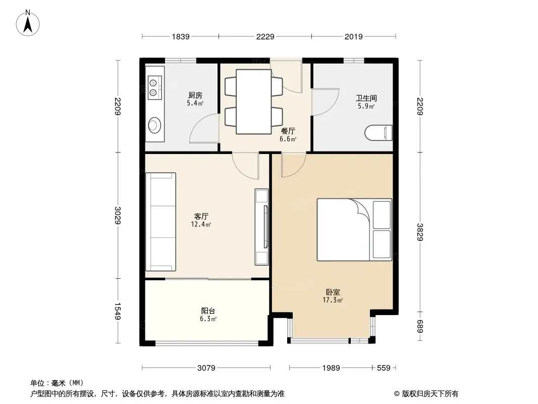 户型齐全,主打户型方正,明卫,明厨,主卧朝南二居