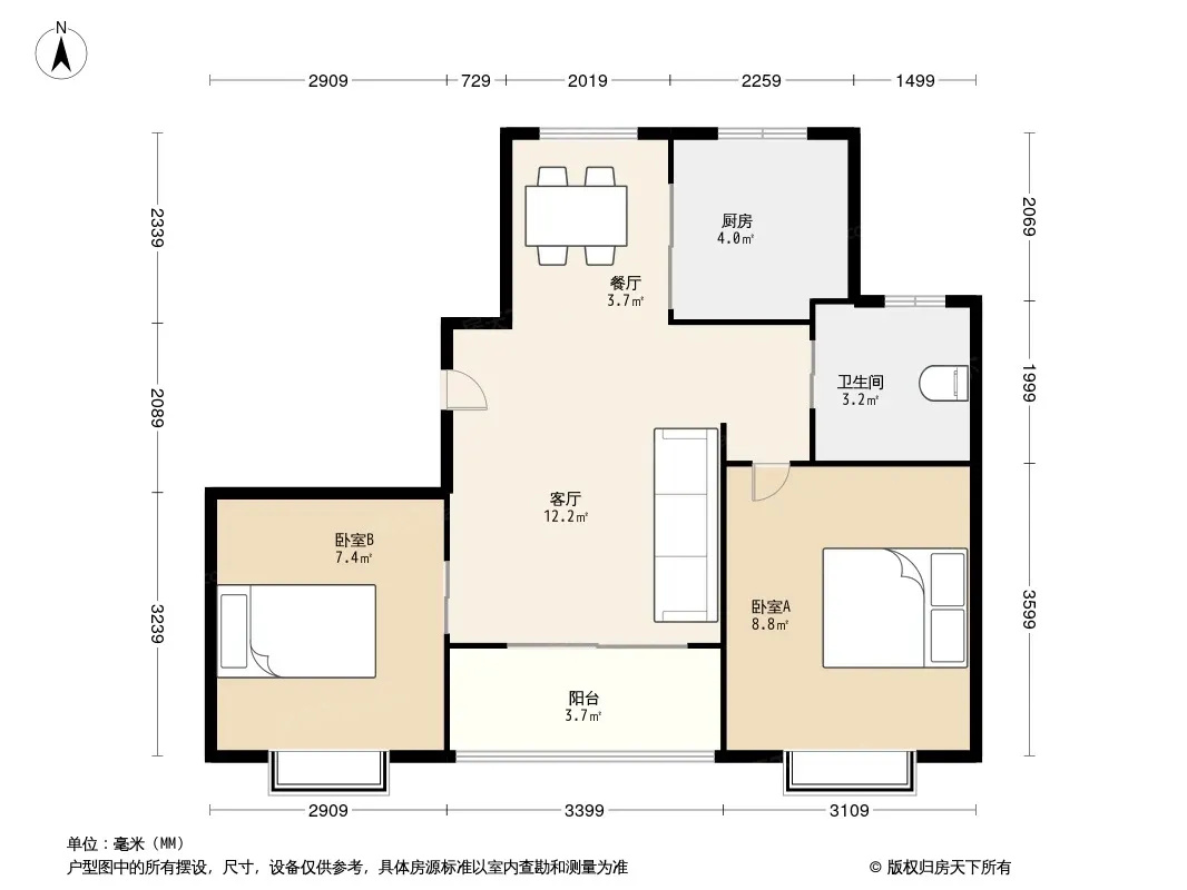 户型齐全,主打户型方正,明卫,明厨,主卧朝南二居