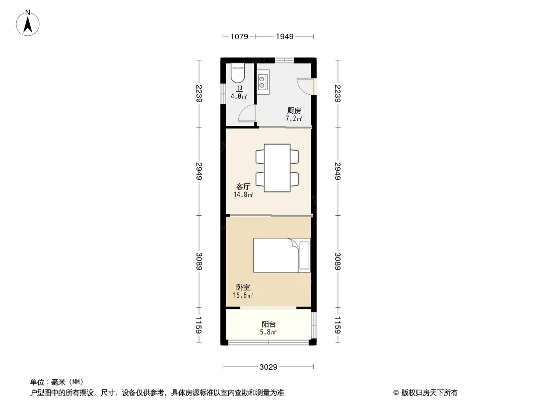此房满二,一室一厅,全明户型。