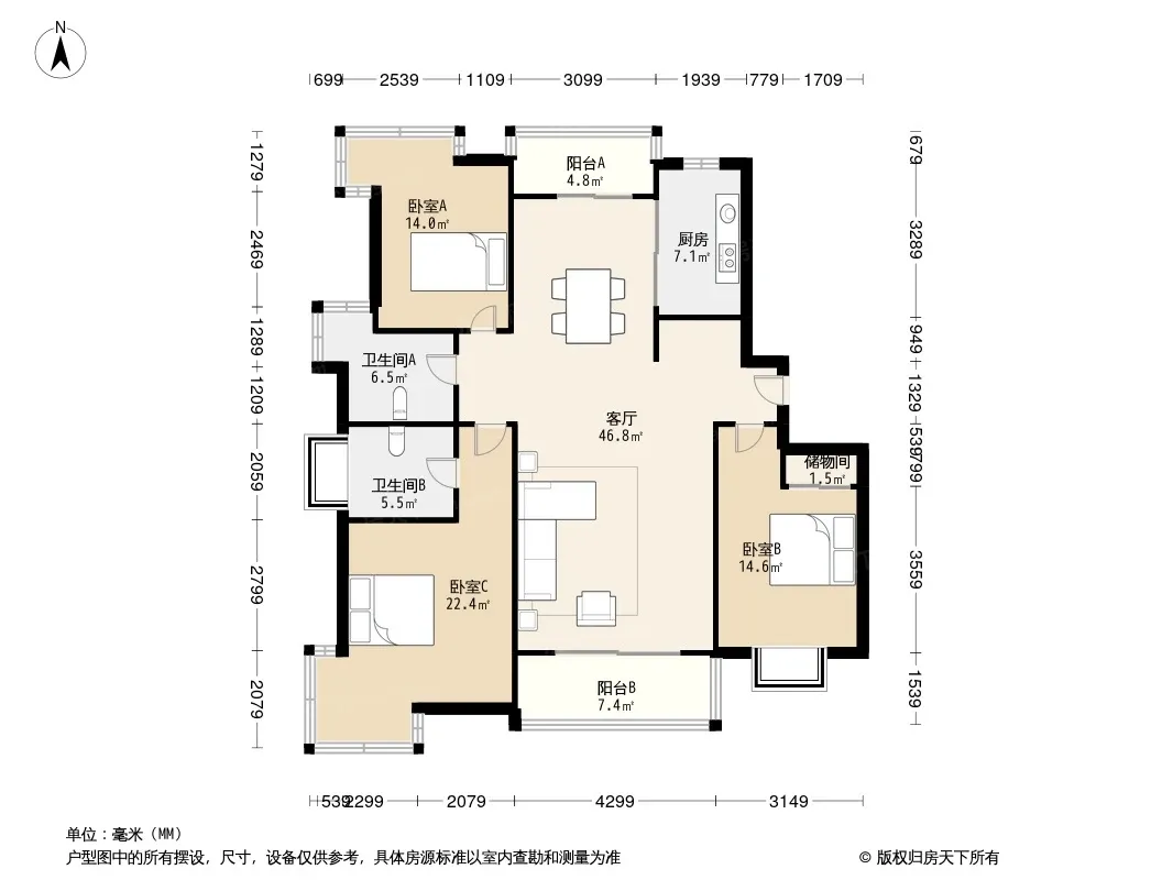 户型齐全,主打户型方正,明卫,明厨,客厅朝南,主卧朝南三居