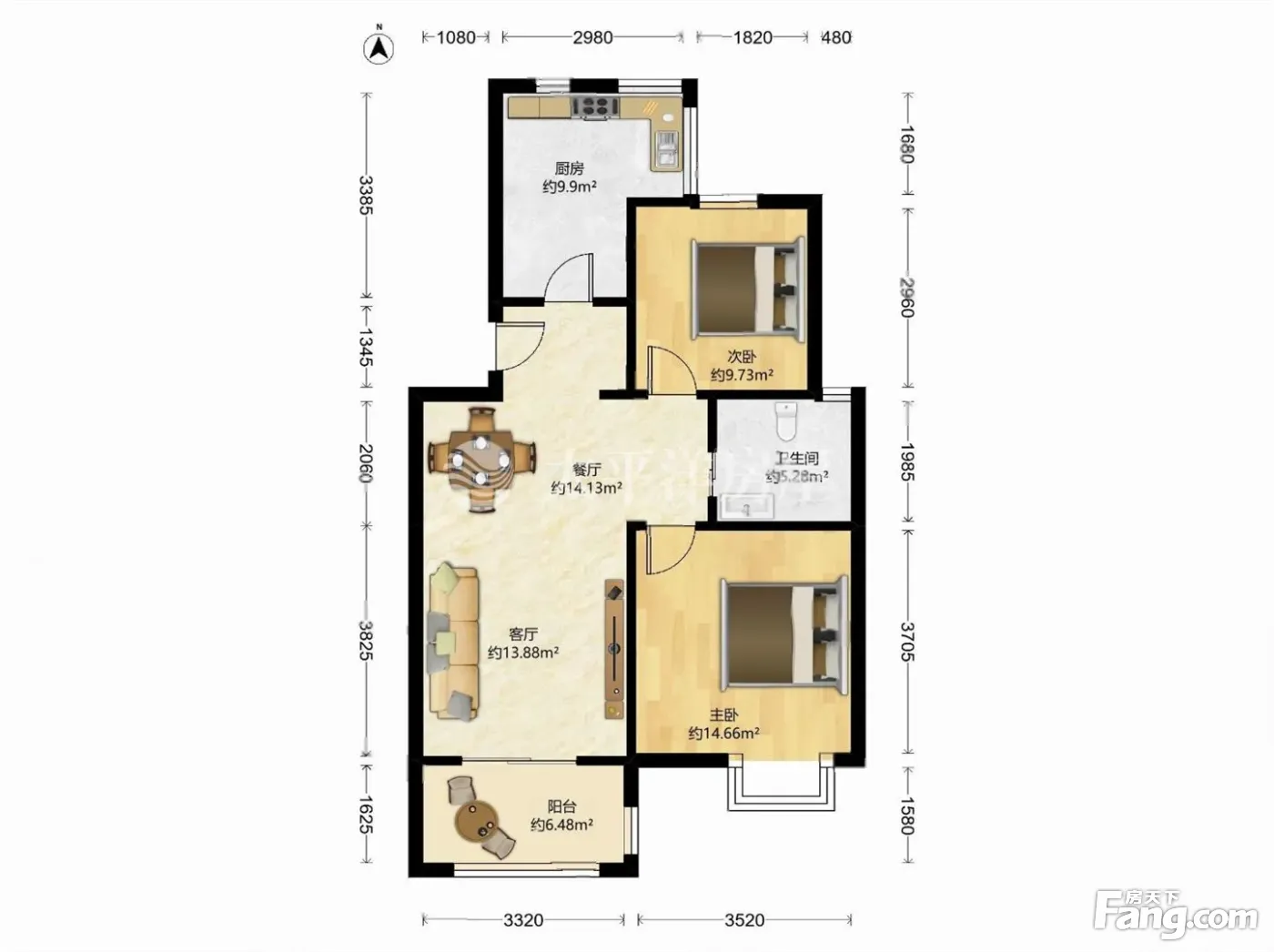 户型齐全,主打户型方正,明卫,明厨,主卧朝南二居