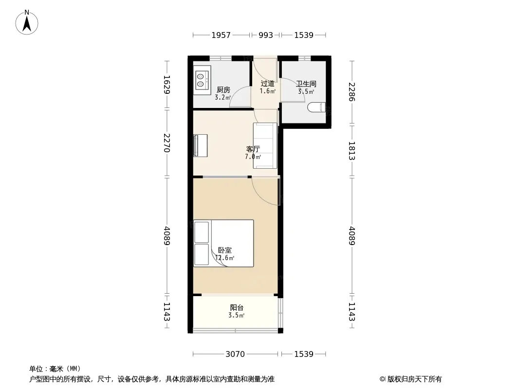 户型齐全,主打户型方正,明厨,明卫,客厅朝南,全明格局一居