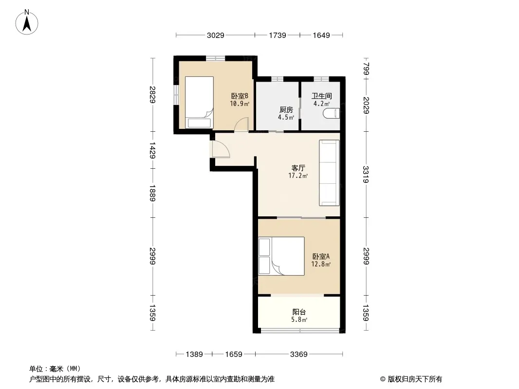 户型齐全,主打明厨,明卫,客厅朝南,全明格局二居