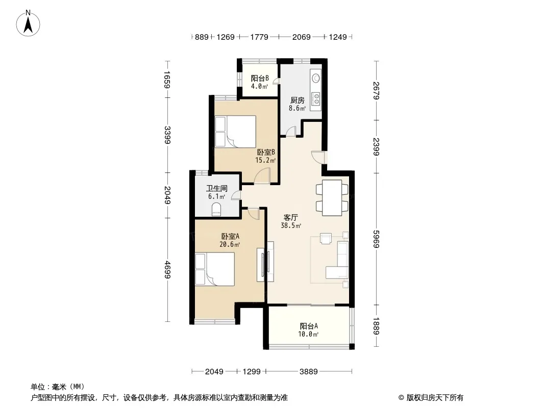 户型齐全,主打采光充足,客厅朝南二居