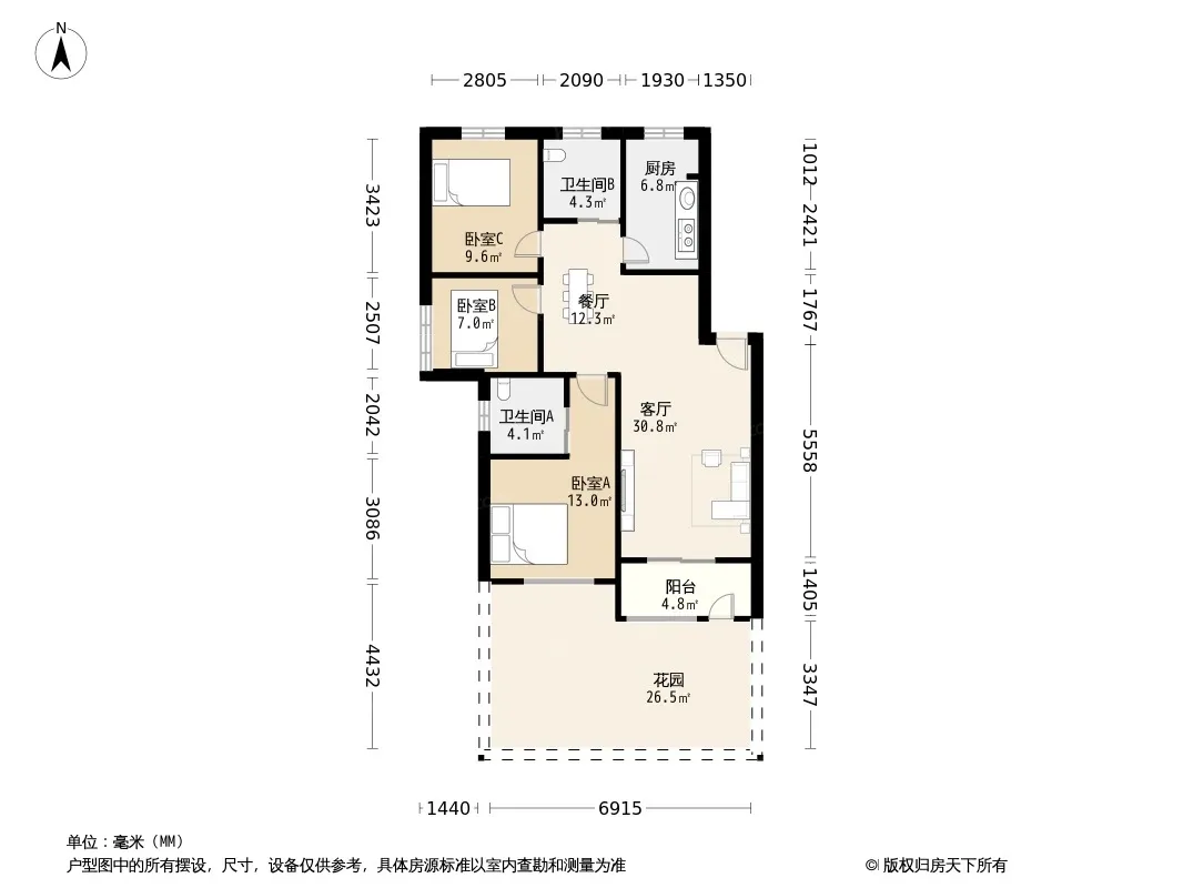 *获取完整户型报告,同时会有免费语音讲解服务