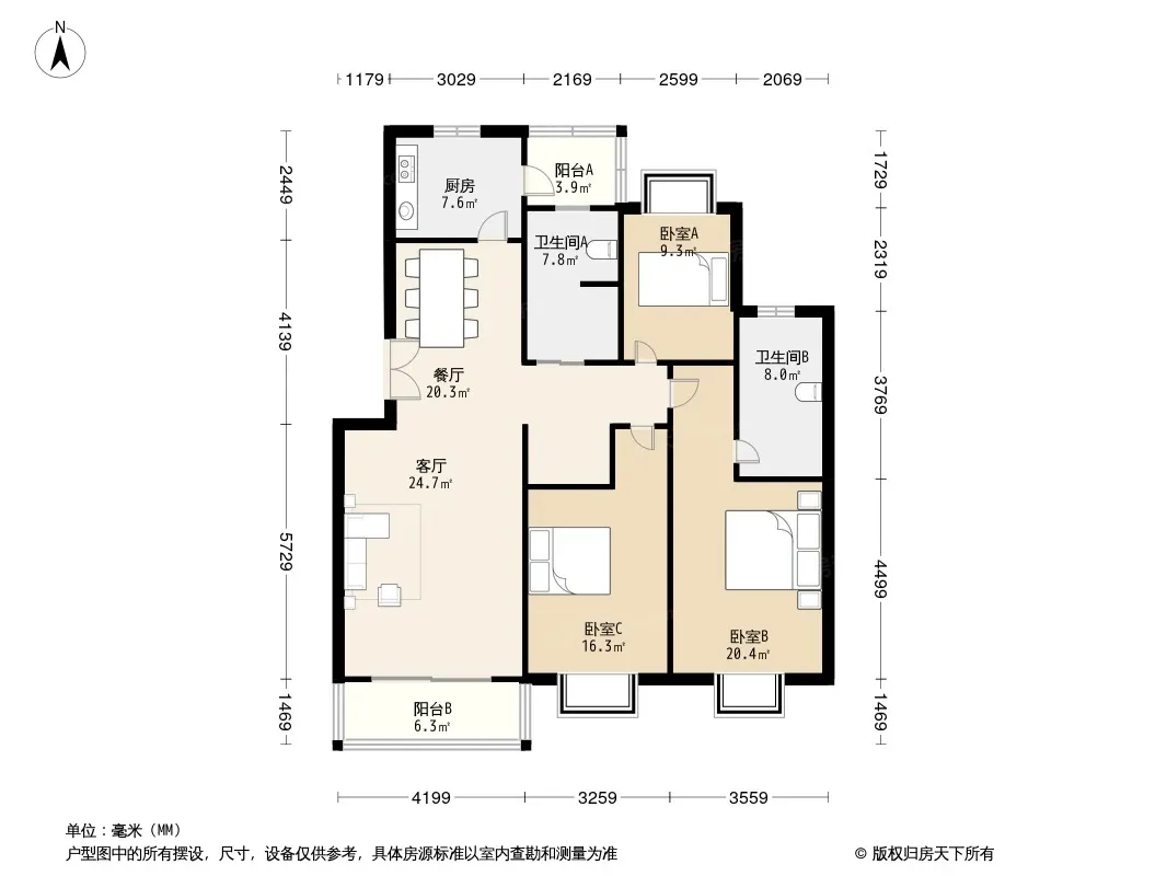 户型齐全,主打户型方正,明卫,客厅朝南,主卧朝南三居