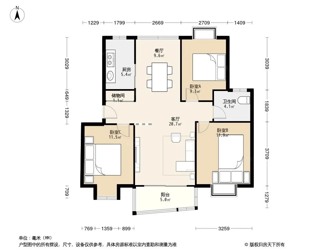 户型齐全,主打户型方正,明厨,明卫,双卧朝南,主卧朝南三居