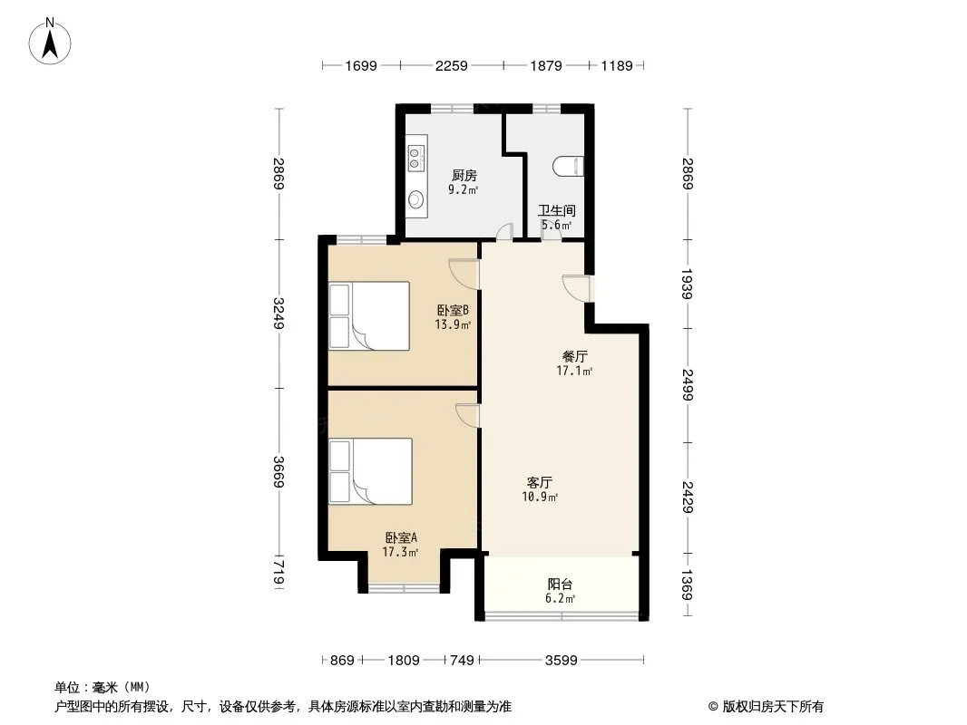 户型齐全,主打户型方正,明厨,明卫,主卧朝南二居