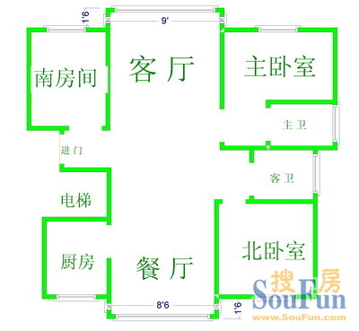 户型齐全,主打户型方正,明卫,明厨,客厅朝南二居