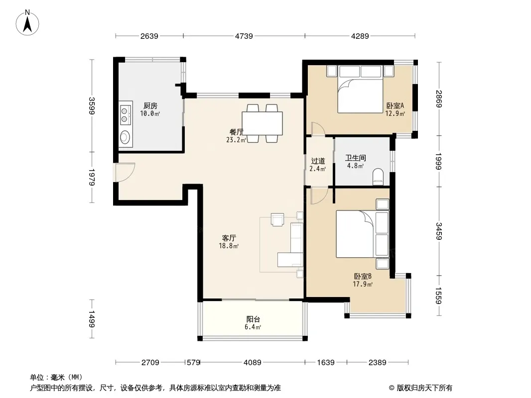 户型齐全,主打户型方正,明卫,客厅朝南二居