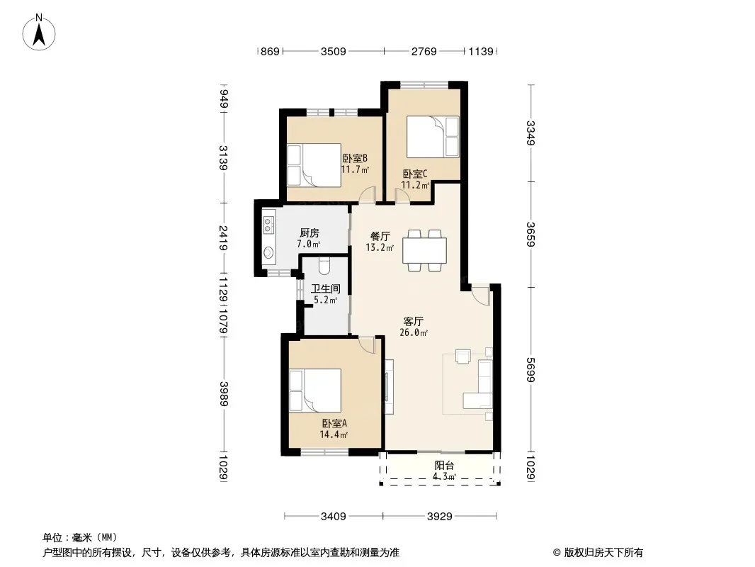 户型齐全,主打户型方正,明卫,明厨,主卧朝南三居