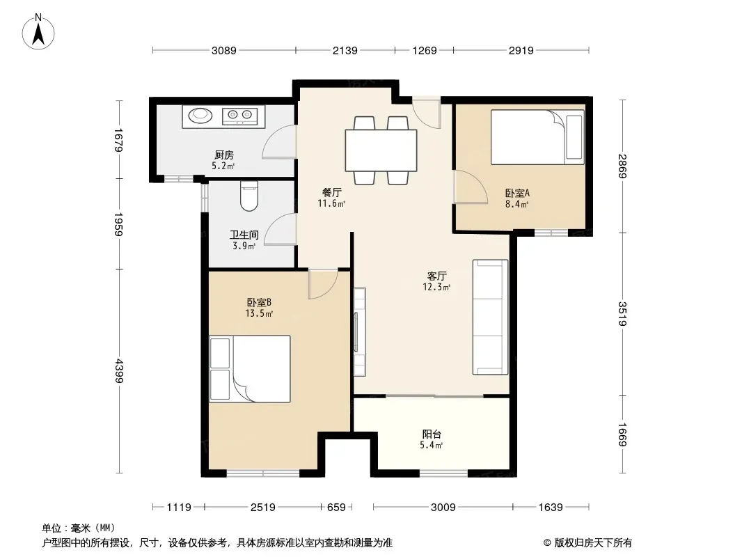 户型齐全,主打户型方正,明厨,明卫,双卧朝南,主卧朝南二居