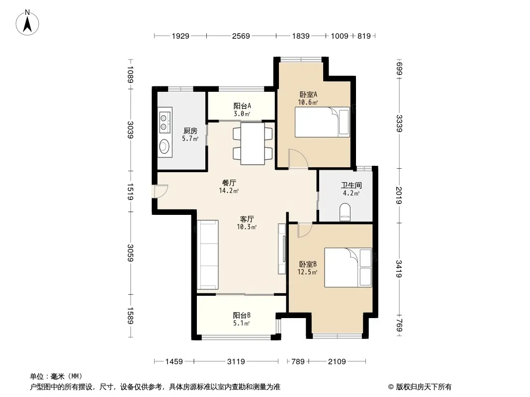 户型齐全,主打户型方正,明厨,明卫,双卧朝南,主卧朝南二居