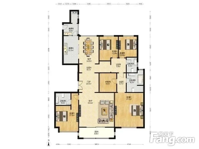 户型介绍:此房户型为4室2厅3卫,建筑面积为243.68平米,朝向为南。