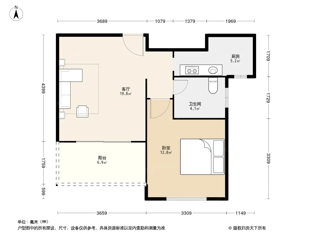 户型齐全,主打明卫,明厨,主卧朝南一居
