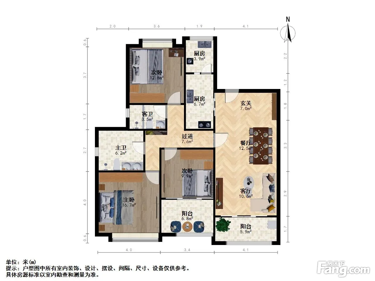 户型齐全,主打户型方正,明卫,明厨,独立衣帽间,主卧朝南三居