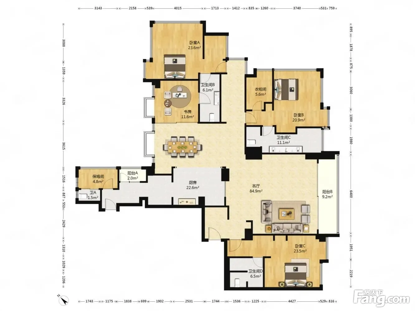 户型齐全,主打户型方正,明卫,独立衣帽间,双卧朝南,主卧朝南三居