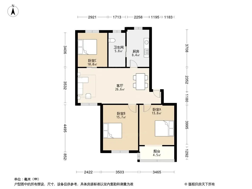 户型齐全,主打户型方正,明厨,明卫,客厅朝南三居
