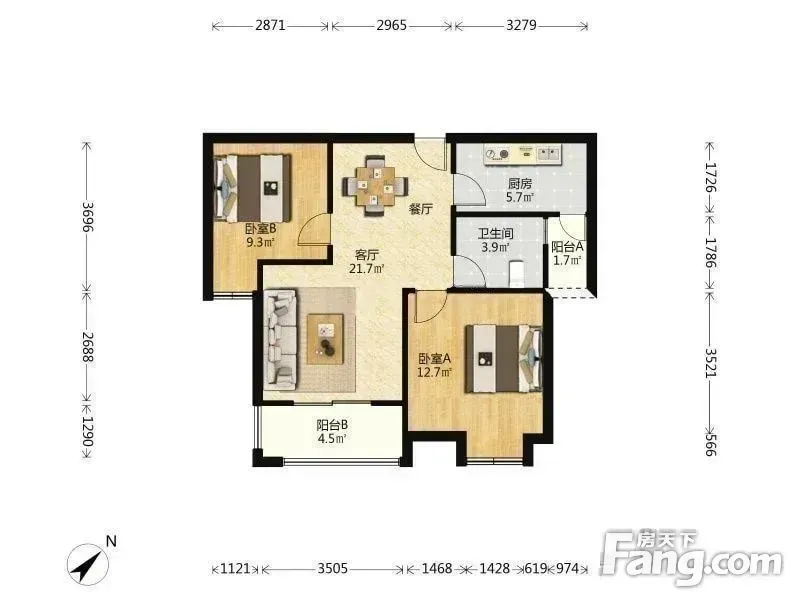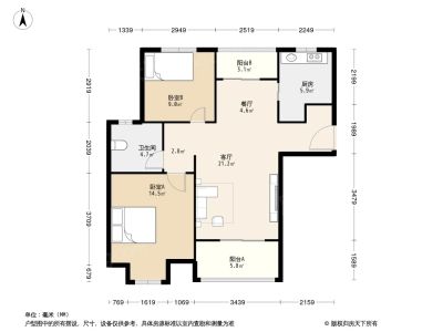 旭辉华庭(住宅) 2室2厅 北 南