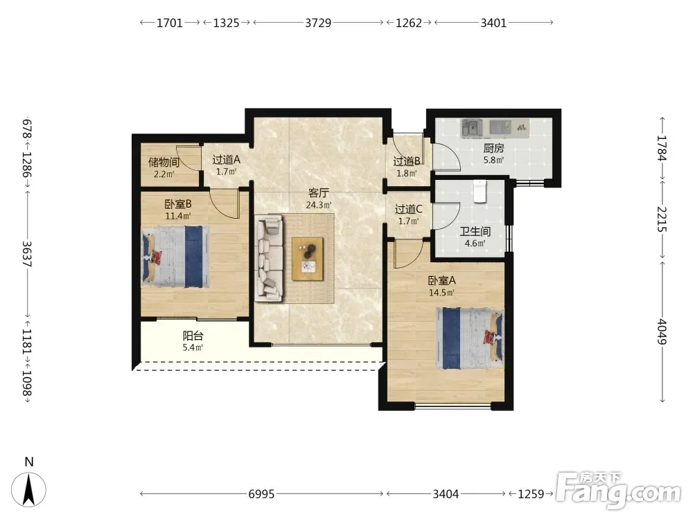 2室2厅1卫