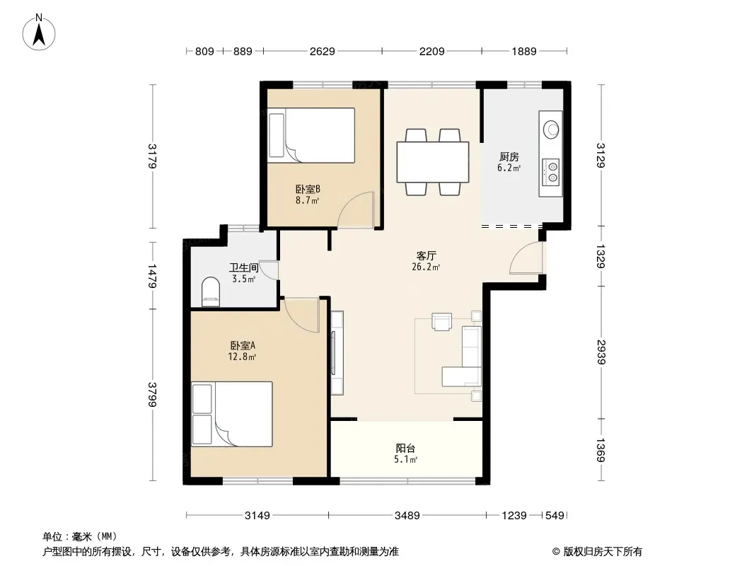 户型齐全,主打户型方正,明厨,明卫,双阳台,主卧朝南二居